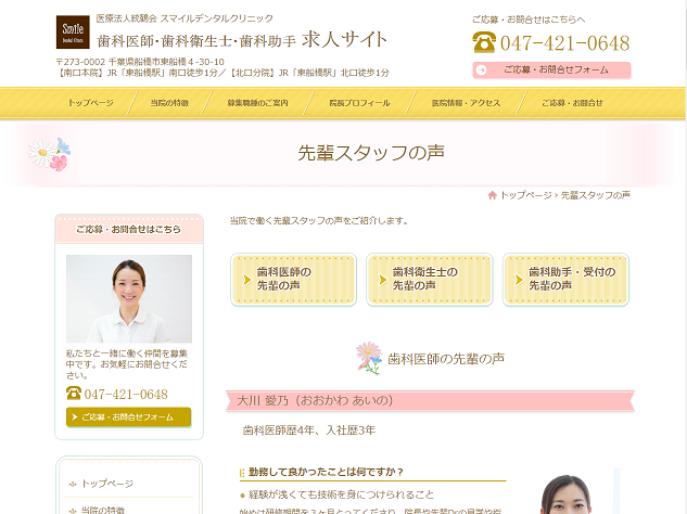 下記は、スマイルデンタルクリニックさまの採用サイトに掲載されている「スタッフの声」です。